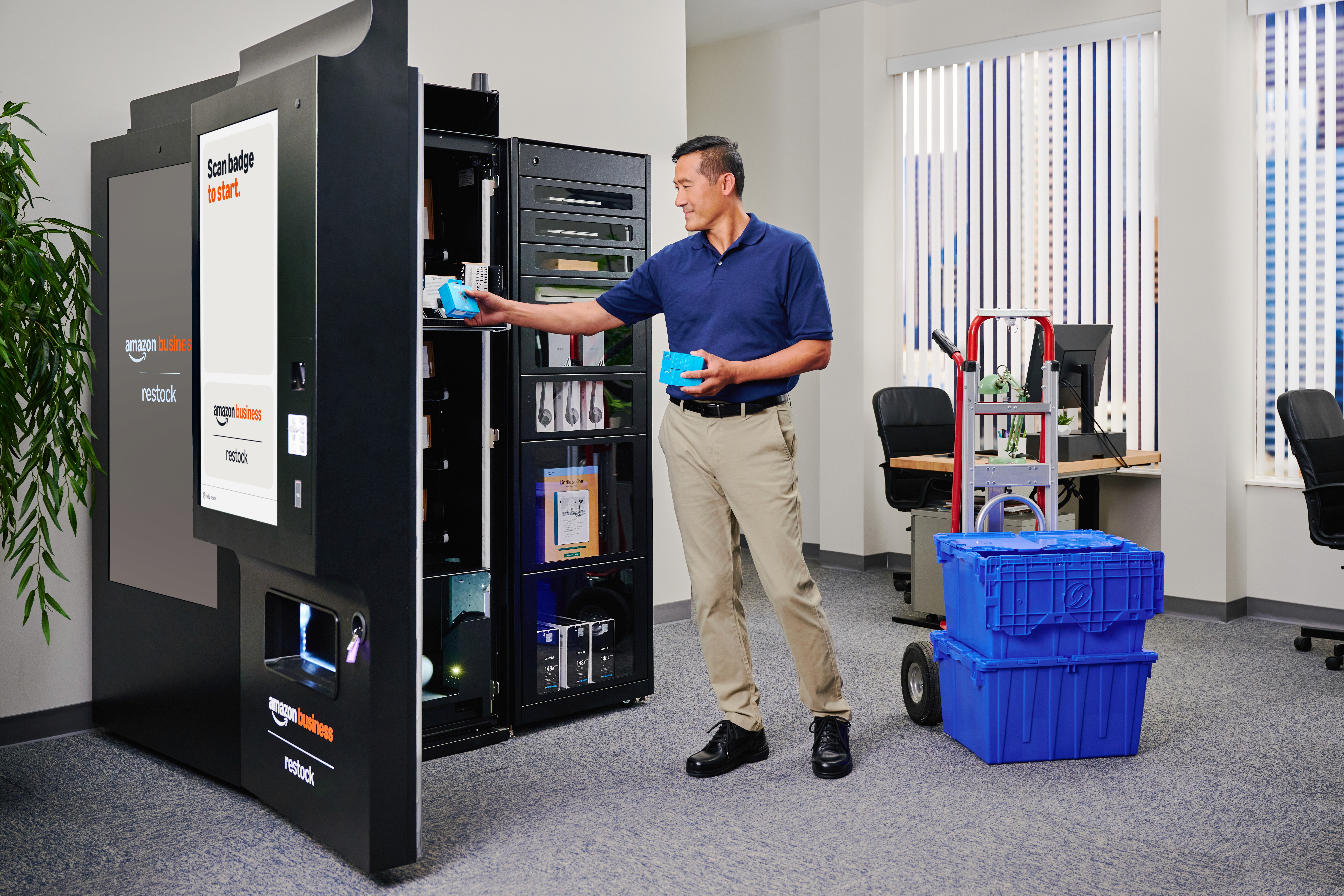 With new Amazon Business branded vending machines and technician-managed inventory, Restock helps businesses maintain employee supplies in both industrial and corporate settings across a variety of worksites.